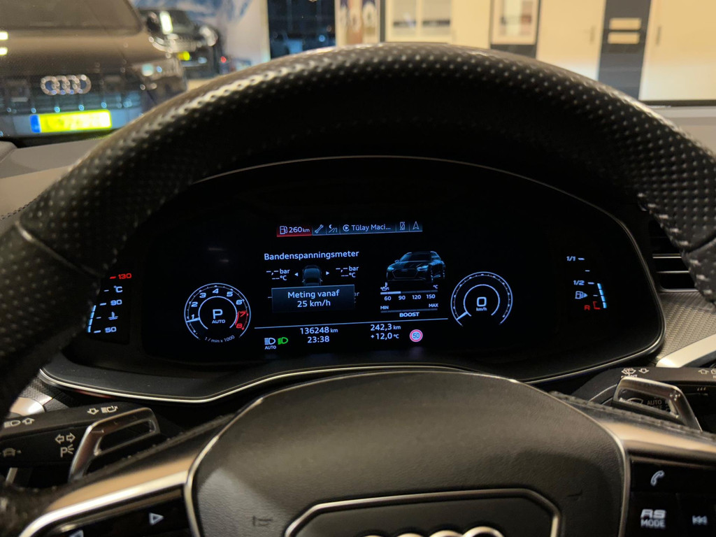 Assistenz-Paket Stadt, Assistenz-Paket Tour, Audi connect Diebstahl-Ortungssystem, Audi connect Schlüssel, Audi music interface im Fond, Außenspiegel Aluminium-Optik matt, Außenspiegel elektr. verstell-, heiz- und anklappbar, mit Abblendautomatik und Memory, Bluetooth-Freisprecheinrichtung mit Spracherkennung (Audi Phone Box), Dachhimmel Stoff, Silber, Dachreling eloxiert, Dynamik-Paket plus, Einparkhilfe plus vorn, seitlich und hinten, akustisch und optisch mit Umgebungsanzeige, Fahrassistenz-System: Insassen-Schutzsystem (Audi pre sense Fond), Fahrassistenz-System: Nachtsicht-Assistent, Fixierset für Schienensystem im Gepäckraum, Frontscheibe Klimakomfort / Akustikglas, heizbar, Head-up-Display, Innenausstattung: Interieurelemente in Leder oben und unten, Ionisator zur Luftreinigung (Air-Quality-System), Kamerasystem Umgebungsansicht (Top View), Komfortschlüssel mit sensorgesteuerter Heckklappenentriegelung und Diebstahl-Warnanlage inkl. (öffnen + schliessen), LM-Felgen 10,5x22 (5-V-Speichen, Struktur-Design, schwarz glänzend, für Winterbereifung), LM-Felgen 10,5x22 (5-V-Speichen, Trapez-Speichen-Design, Anthrazit-Schwarz, glanzgedreht), Matrix-LED-Scheinwerfer mit Laserlicht, Metallic-Lackierung, MMI-Fernbedienung im Fond Audi exclusive, Optik-Paket Aluminium matt, Panoramadach vorn elektrisch, hinten fest, Sender für Garagentoröffner (integriert), Servoschliessung für Türen, Sitzbezug / Polsterung: Leder Valcona perforiert, Wabensteppung, belüftet), Sitzblenden Audi exclusive Leder, Sonnenschutzrollo an Türscheiben hinten, Sound-System Bang & Olufsen, Sport-Auspuffanlage, Sport-Fahrwerk RS plus mit Dämpferregelung, Standheizung, TV-Empfang (Tuner) digital und Radioempfang digital, Verglasung hinten abgedunkelt (Privacyverglasung)