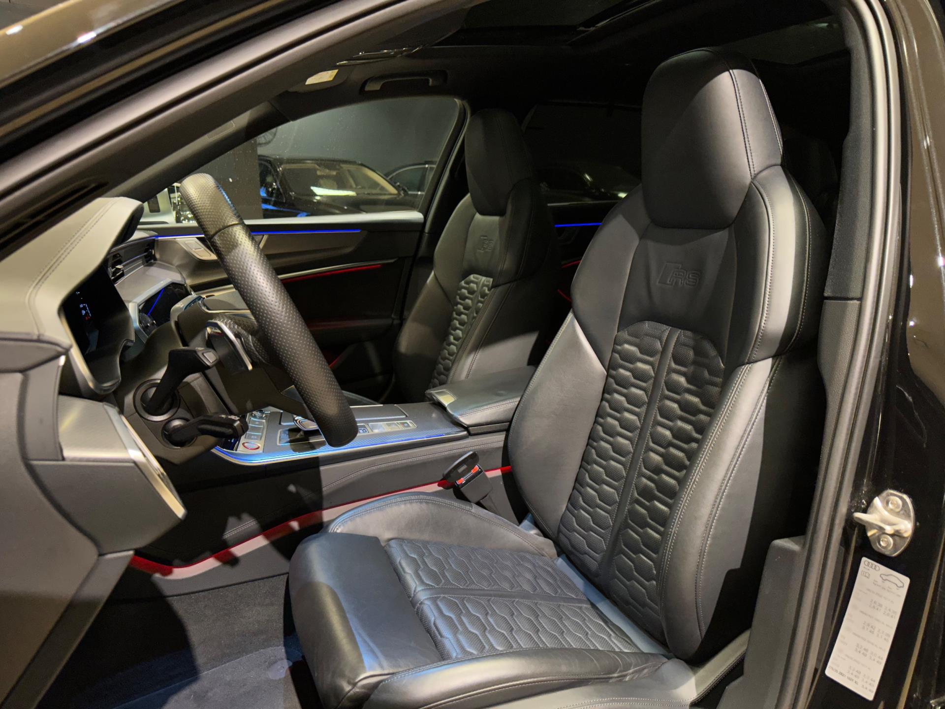 Ablage-Paket, Airbag Beifahrerseite abschaltbar, Airbag Fahrer-/Beifahrerseite, Akustikglas Türscheiben seitlich, Audi connect (Internetbasierende Dienste), Audi connect (Notruf- und Assistance-System), Audi Drive Select, Audi music interface, Audi Smartphone Interface, Außenspiegel asphärisch, links, Außenspiegel asphärisch, rechts, Bedienelemente Glasoptik, inkl. erweiterter Aluminium-Optik, Blinkleuchten LED in Außenspiegel integriert, Dachkantenspoiler RS, Diebstahlsicherung für Räder (Felgenschlösser), Doppel-Sonnenblenden (verschiebbar, ausziehbar), Einstiegsleisten mit Aluminiumeinlage und Schriftzug, beleuchtet, Fahrassistenz-System: Bremsassistent (Audi pre sense front), Fahrassistenz-System: Fernlichtassistent, Fahrassistenz-System: Insassen-Schutzsystem (Audi pre sense basic), Fahrassistenz-System: Spurverlassenswarnung, Fensterheber elektrisch hinten, Fondsitzanlage (3 Sitzplätze), Gepäckraumklappe elektr. betätigt (öffnen + schliessen), Innenausstattung: Dekoreinlagen Aluminium Race Anthrazit, Innenspiegel mit Abblendautomatik, Isofix-Aufnahmen für Kindersitz, Isofix-Aufnahmen für Kindersitz an Beifahrersitz, Karosserie: 4-türig, Kofferraummatte, Kombiinstrument digital (virtual cockpit plus), Komfort-Klimaautomatik 4-Zonen, Kontur / Ambientebeleuchtungs-Paket (plus), Kopf-Airbag-System (Sideguard), Kraftstofftank: 73 Ltr., Lendenwirbelstützen vorn, elektr. verstellbar, Lenkrad (Sport/Leder - 3-Speichen, unten abgeflacht) mit Multifunktion und Schaltfunktion, Lenksäule (Lenkrad) elektr. verstellbar mit Memory, Mild-Hybrid 441 kW (Motor 4,0 Ltr. - 441 kW V8 32V TFSI), Mild-Hybrid-Technologie, Multi-Media-Interface MMI Basic Plus / MMI Radio Plus, Multi-Media-Interface MMI Navigation Plus mit MMI Touch, Nichtraucher-Paket, Otto-Partikelfilter (OPF), Pedale und Fußstütze in Edelstahl, Radioempfang digital (DAB), Reifen-Reparaturkit, Reifendruck-Kontrollsystem, RS-Sportsitze vorn, Rücksitzlehne geteilt/klappbar (40:20:40), Schadstoffarm nach Abgasnorm Euro 6d-TEMP, Schalt-/Wählhebelgriff Leder gelocht (perforiert), Scheibenwaschdüsen heizbar, Sitzbezug / Polsterung: Alcantara / Leder mit Logo-Prägung in Vordersitzlehnen, Sitze vorn elektr. verstellbar (links mit Memory), Sitzheizung vorn, Start/Stop-Anlage, Stoßfänger RS-Version, Wärmeschutzverglasung (seitlich / hinten)
